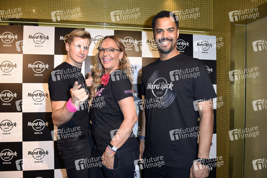 Lukas Sauer, Natascha Ochsenknecht und Patrice Bouedibela kellnern im Rahmen der Pinktober Charity-Aktion zugunsten der Organisation Brustkrebs Deutschland e.V. im Hard Rock Cafe. Berlin, 27.10.2019