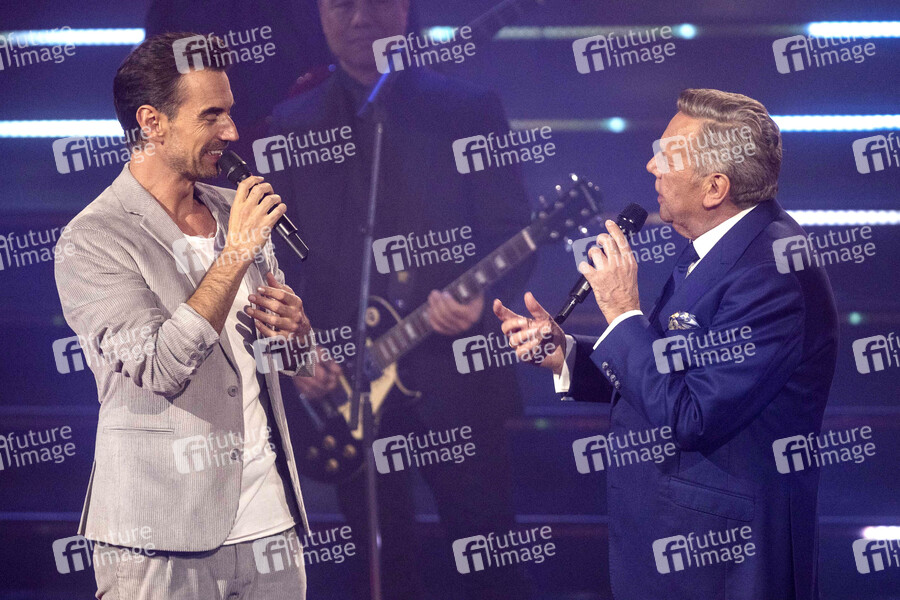 Florian Silbereisen und Roland Kaiser bei der Aufzeichnung der TV-Show 'Das grosse Schlagerjubiläum 2022 - Auf die nächsten 100!' im Studio 3 der Media City. Leipzig, 21.10.2022