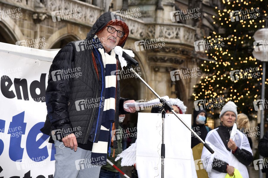 Konstantin Wecker bei der Kundgebung gegen die geplante Steigerung der Rüstungsausgaben unter dem Motto 'Abrüsten statt Aufrüsten' im Rahmen des bundesweiten Aktionstages gegen Aufrüstung und Krieg am Marienplatz. München, 05.12.2020