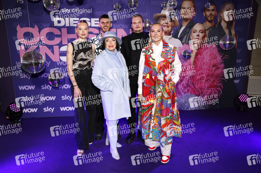 Cheyenne Savannah Ochsenknecht, Nino Sifkovits, Bärbel Wierichs, Wilson Gonzalez Ochsenknecht und Natascha Ochsenknecht beim Photocall zum Start der 3. Staffel der TV-Serie 'Diese Ochsenknechts' im Soho House. Berlin, 08.02.2024
