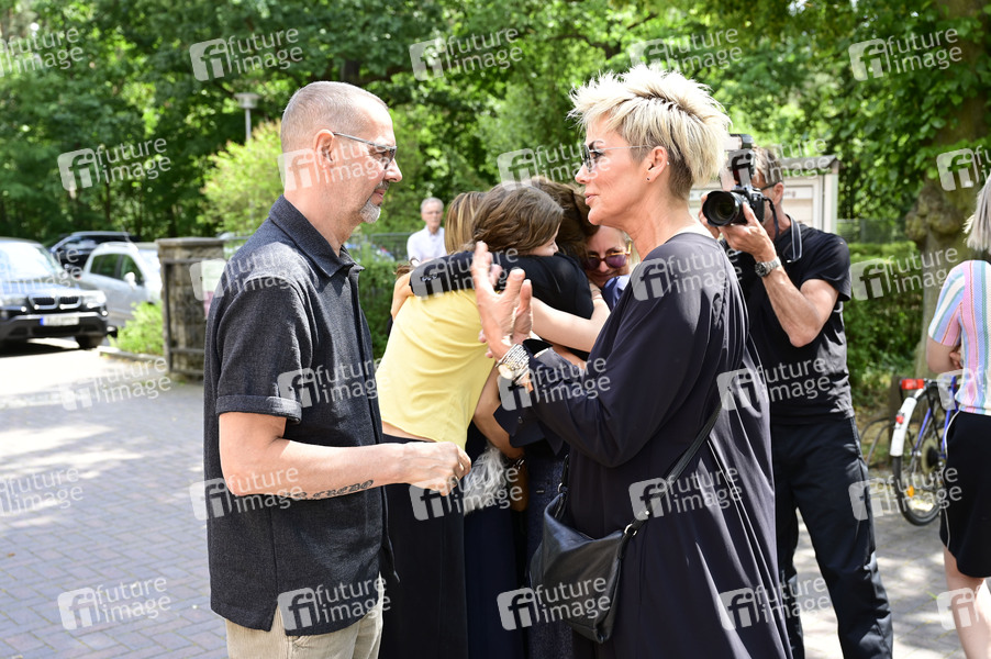 Mathias Blankenstein und Inka Bause bei der Trauerfeier für Urte Blankenstein in der Kapelle des Waldfriedhofs Oberschöneweide. Berlin, 19.06.2025