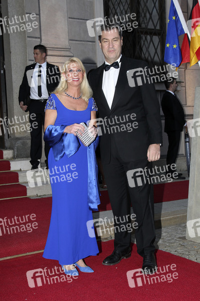 Markus Söder mit Ehefrau Karin Söder beim Empfang der britischen Royals zum Staatsbankett vor der Residenz München. München, 09.05.2019