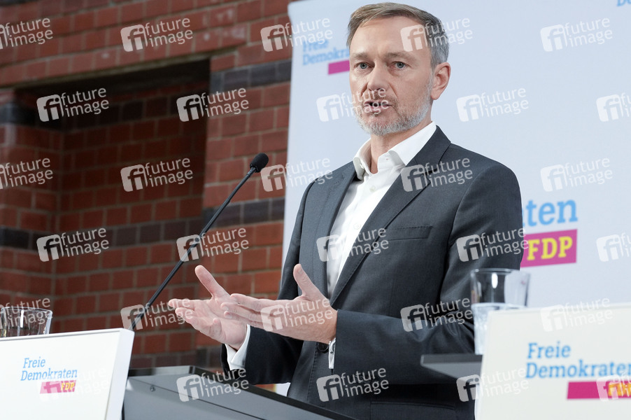 Christian Lindner bei der Presseskonferenz der FDP zur Vorstellung des neuen Generalsekretärs Marco Buschmann im Hans-Dietrich-Genscher-Haus. Berlin, 02.12.2024