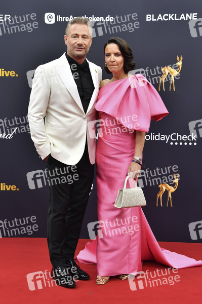 Sasha mit Ehefrau Julia Röntgen bei der 76. Bambi-Verleihung 2024 in den Bavaria Filmstudios. München, 07.11.2024