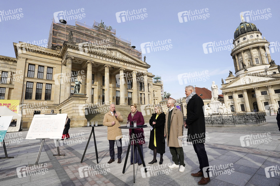 Kai Wegner, Franziska Giffey, Ute Bonde, Christopher Schriner und Christoph Schmidt bei der Wiedereröffnung vom Gendarmenmarkt nach zweijähriger Sanierung. Berlin, 13.03.2025