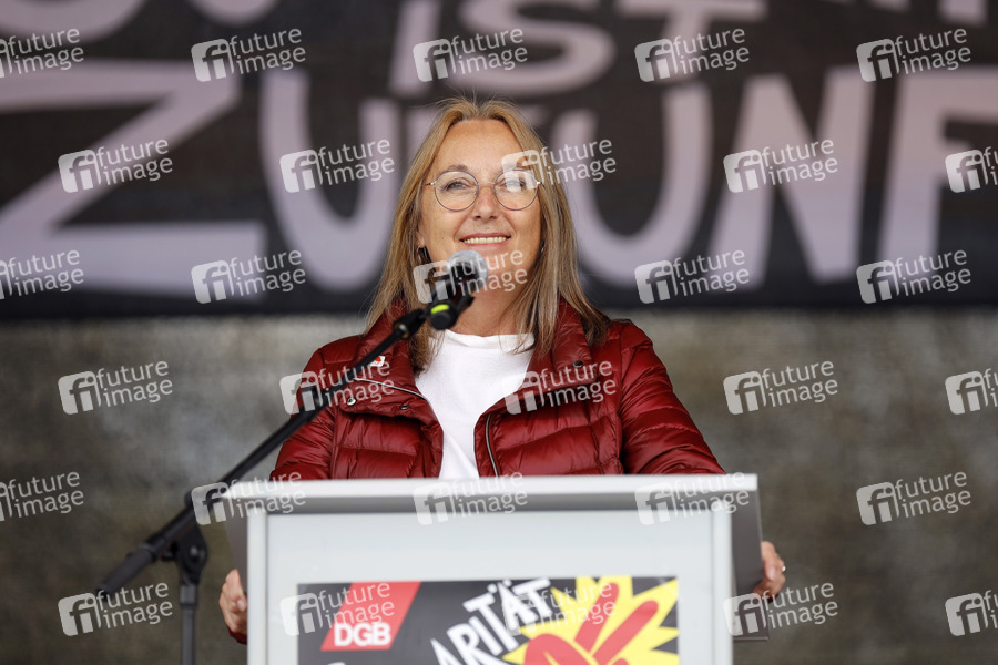 Anja Weber bei der Kundgebung des NRW DGB zum Ersten Mai im Autokino an der Merkur Arena. Düsseldorf, 01.05.2021