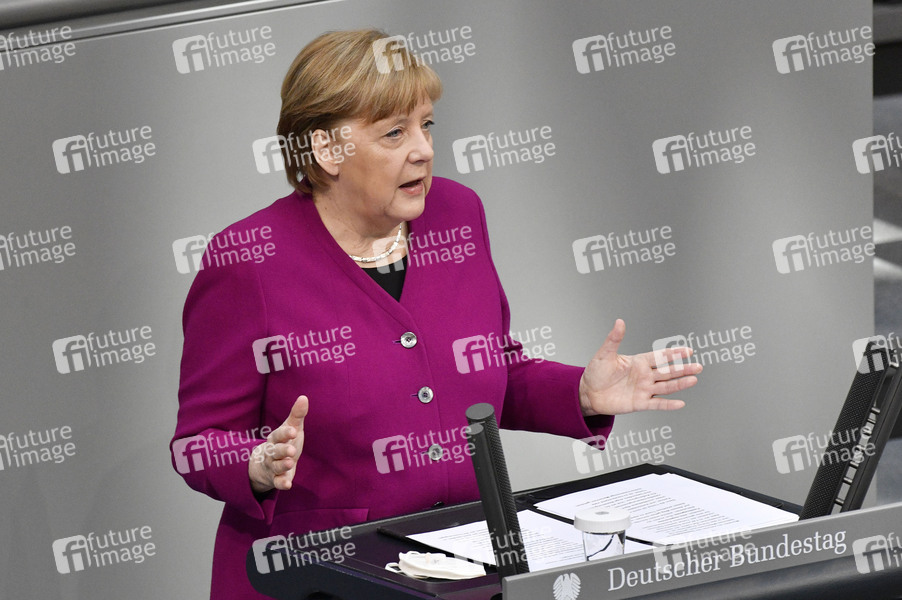 Angela Merkel in der 218. Sitzung des Deutschen Bundestages im Reichstagsgebäude. Berlin, 25.03.2021