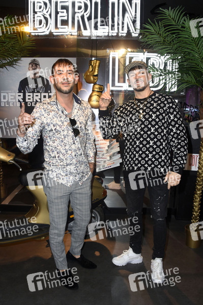 Daniele Negroni mit Capital Bra Wachsfigur bei der Eröffnung der Ausstellung 'Berlin 100' im Madame Tussauds. Berlin, 15.07.2021
