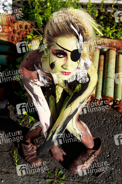 Bodypainting, Erotik, Frau, Mädchen, nackt, draußen, weiblich, Körperkunst, Kunst, Malerei, Augenklappe, erotic, woman, girl, nude, outdoor, female, body art, body painting, eyepatch