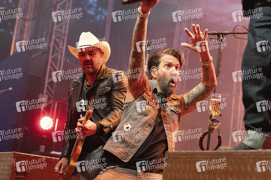 Stefan 'Russ T. Rocket' Buehler und Alec Völkel von The BossHoss live beim beim Bürgerfest des Bundespräsidenten mit Gastland Portugal und 4.000 geladenen Ehrenamtlichen im Park vom Schloss Bellevue. Berlin, 12.09.2025