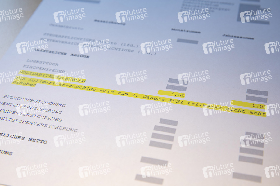 Bezügeabrechnung, Bruttobezüge, Bruttolohn, Bundesfinanzminister, Einkommensteuer, Entlastung, Ersparnis, Freigrenze, Gehalt, Gehaltszettel, Jahresbrutto, Kosten, Lohnabrechnung, Lohnzettel, mehr Geld, Milderungszone Monatsbrutto, Nettobezüge, Nettolohn, neue Regelung, Soli-Abschaffung, Soli-Zahler, Solidarpakt, Steuerentlastung, Steuerlast, Steuerzahlung, Unter dem Strich, Unterm Strich, weitgehende Abschaffung, Symbolbild, Symbolfoto