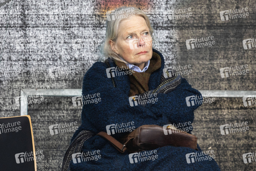 Corinna Kirchhoff auf der umstrittenen Friedensdemo und Kundgebung für Verhandlungen mit Russland statt Waffenlieferungen für die Ukraine am Brandenburger Tor. Dazu aufgerufen haben die Linken-Politikerin Sahra Wagenknecht und die Frauenrechtlerin Alice Schwarzer. Berlin, 25.02.2023
