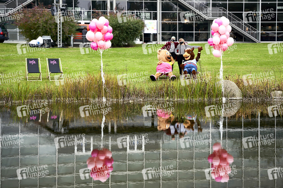 Eröffnung der Erlebnis- und Einkaufsmesse Infa 2020 - Unter Einhaltung zahlreicher Corona-Hygieneregeln und Sicherheitskonzepte ist die Messe mit einem deutlich reduzierten Programm gestartet. Nach der niedersächsischen Corona-Verordnung können Messen nach behördlicher Genehmigung unabhängig von der Teilnehmerzahl zugelassen werden. Hannover, 17.10.2020