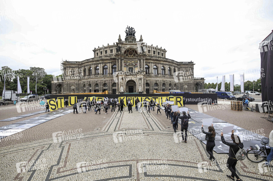 Demonstration 'Ohne uns ist Stille' der Organisation 'Leere Stühle' auf dem Theaterplatz in der historischen Dresdner Altstadt. Künstler, Veranstalter und Unternehmen der Veranstaltungsbranche wie Caterer und Techniker demonstrieren gemeinsem, um auf die Probleme und Wichtigkeit ihrer Branche aufmerksam zu machen. Dredsen, 05.06.2020