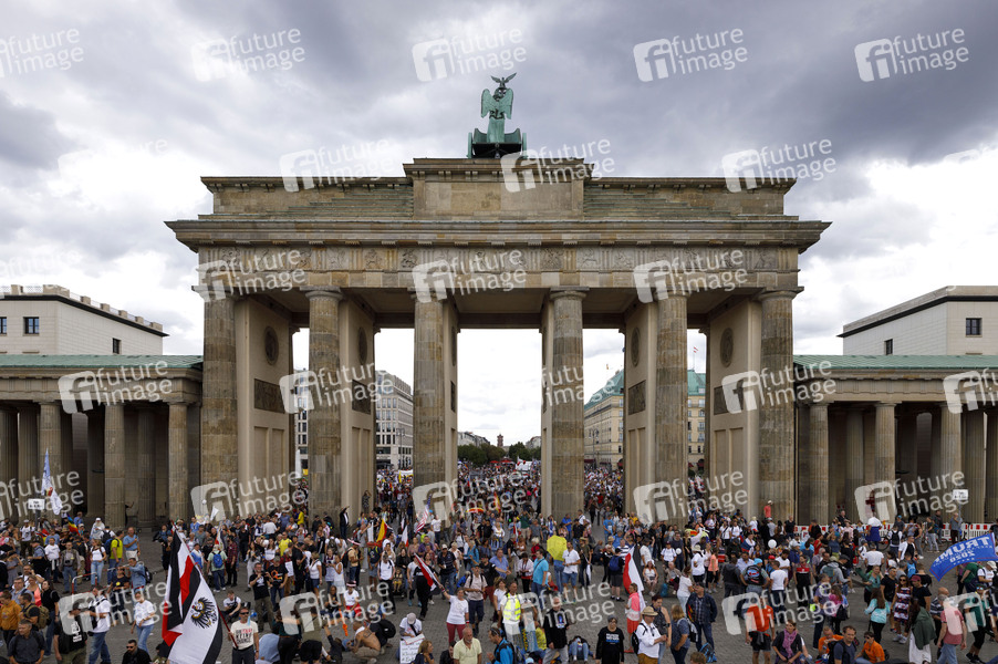 Demonstranten verschiedener Gruppierungen wie etwa der Initiative Querdenken 711 protestierten mit einer Großdemonstration in Berlin gegen die bestehenden Maßnahmen zur Eindämmung der Corona-Pandemie. Wegen Nichteinhaltung der polizeilichen Auflagen wurde die Demonstration durch die Polizei beendet. Es gab Rangeleien und Festnahmen. Berlin, 29.08.2020