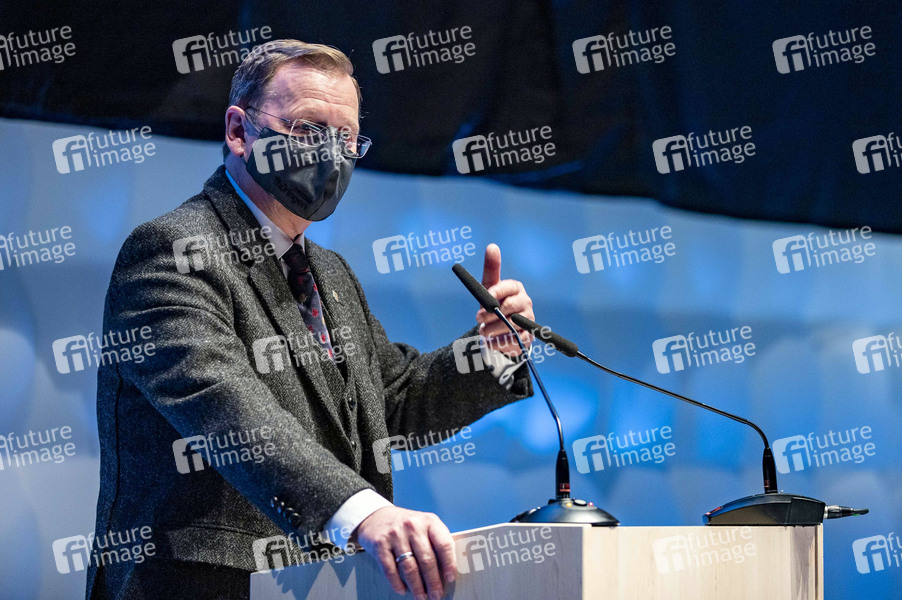 Politiker, Die Linke, Ministerpräsident von Thüringen, Ausstellung, Fair, Messe, Präsentation, Fachmesse und Konferenz für vorbeugende Corona-Schutzmaßnahmen, Corona, Sars-CoV-2, Covid-19, Coronavirus, Coronaviren, Corona-Virus, Coronakrise, Corona-Krise, Corona-Pandemie, Coronamaßnahmen, Corona-Schutz, Infektionsschutz, hybride Veranstaltung in Teil-Lockdown, Provention