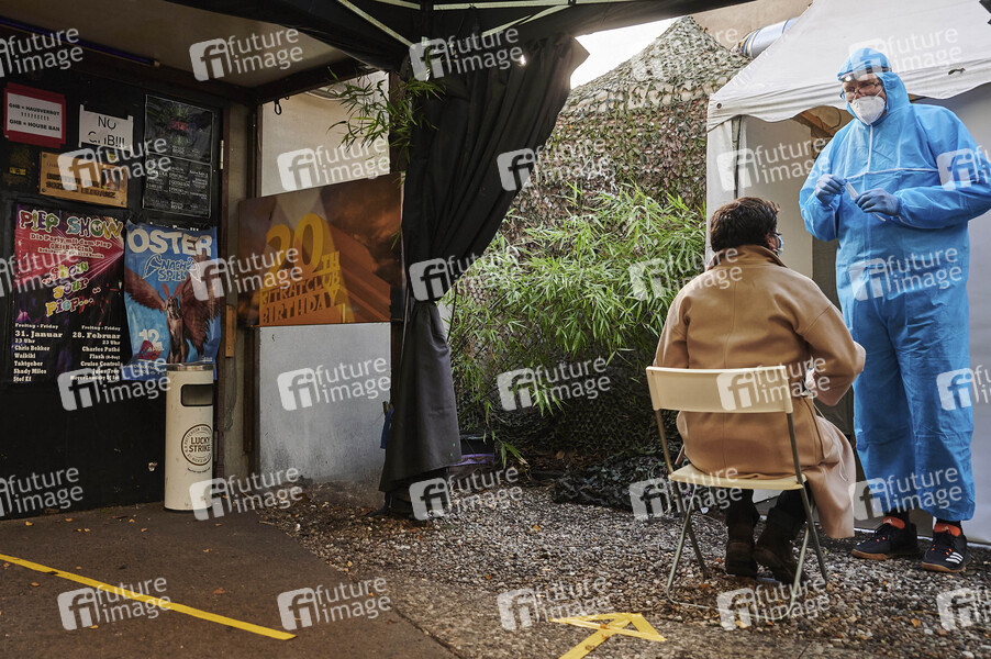 Der durch die Corna-Maßnahmen geschlossene Berliner Fetisch-Club KitKat bietet ab Freitag in seinem Vorgarten Corona-Schnelltests für knapp 25 Euro an. Weitere Berliner werden diesem Beipsiel folgen und zu Corona-Testzentren umfunktioniert, erklärt die Berliner Clubcommission. Berlin, 04.12.2020