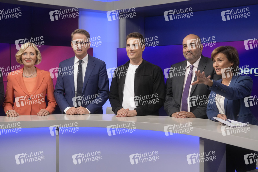 Petra Gerster, Carsten Linnemann, Constantin Schreiber, Omid Nouripour und Sandra Maischberger in der ARD-Talkshow 'maischberger' im Studio Berlin Adlershof. Berlin, 17.09.2024