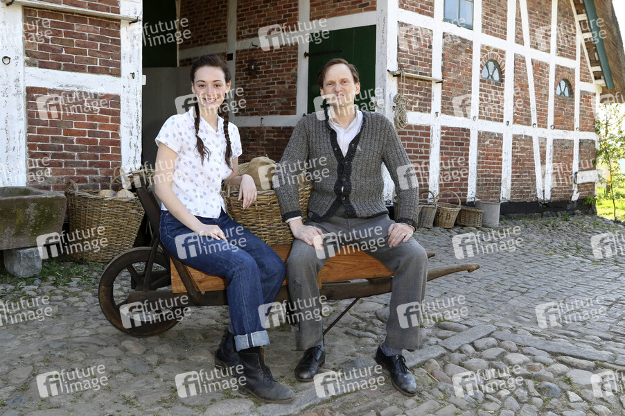 Maria Ehrich und Milan Peschel beim Fototermin am Set zum ZDF Film 'Altes Land' im Motiv 'Hof Ida'. Jork, 23.04.2019