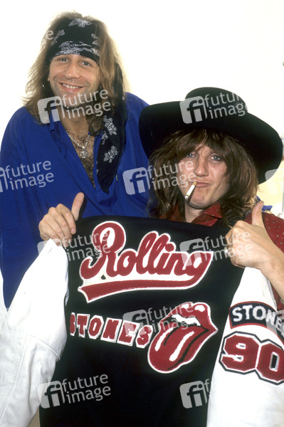 Rudi Richman und Guy Bailey von The Quireboys bei einem Photoshooting in einem Hotel. London, 14.07.1990