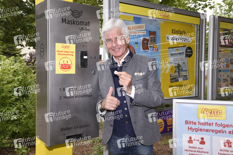 Frederic Meisner bei der Präsentation des ersten Flavura Maskomaten in München vor der Netto-Filiale in Aubing. München, 17.06.2020