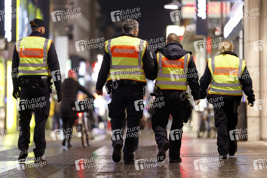 Mitarbeiter des Kölner Ordnungsamtes kontrollieren, dass Personen in der Hohe Straße die dort geltenden Corona-Regeln wie Maskenpflicht und Mindestabstand einhalten. (Themenbild, Symbolbild) Köln, 08.12.2020