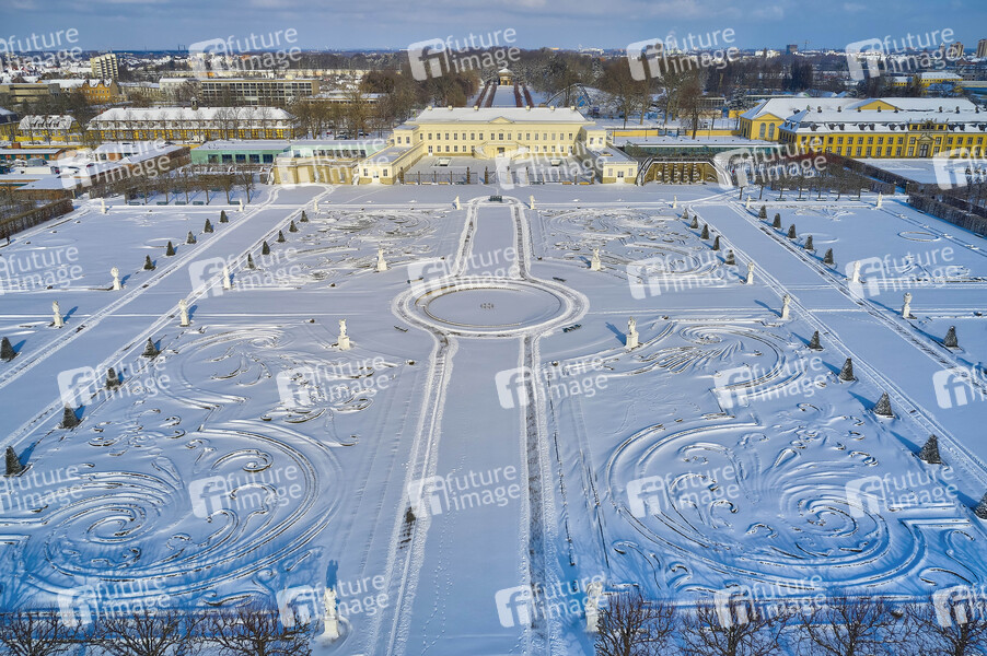 Luftaufnahme, Großer Garten, Barockgarten, Sehenswürdighkeit, Sightseeing, Tourismus, Veranstaltungsort, Berggarten, Winter, Schnee