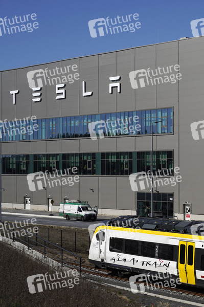 Die Tesla Gigafactory Berlin-Brandenburg ist eine Großfabrik von Tesla im Ortsteil Freienbrink der märkischen Gemeinde Grünheide. Sie befindet sich rund 30 Kilometer Luftlinie südöstlich vom Zentrum Berlins. Es handelt sich um eine der größten Elektroauto-Fabriken in Deutschland und die erste des US-Herstellers in Europa. Der erste vollelektrische, batteriebetriebene Zug Giga Train befördert Passagiere vom Bahnhof Erkner nach Tesla Süd, dem Bahnhof am Produktionsstandort des Unternehmens. Grünheide, 04.04.2025