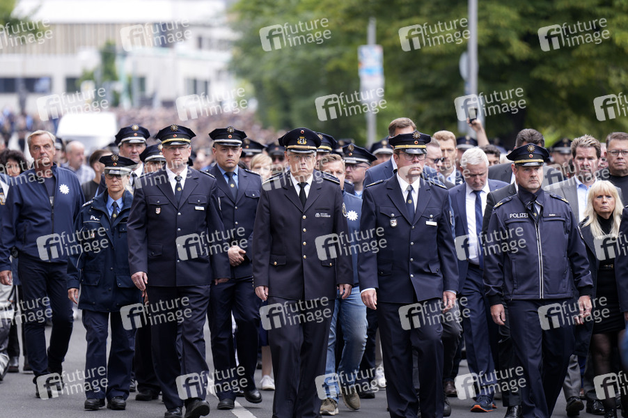 Polizisten in Uniform beim Schweigemarsch für den ermordeten Mannheimer Polizisten Rouven L. vom Potsdamer Platz zur Landesvertretung Baden-Württemberg. Berlin, 07.06.2024