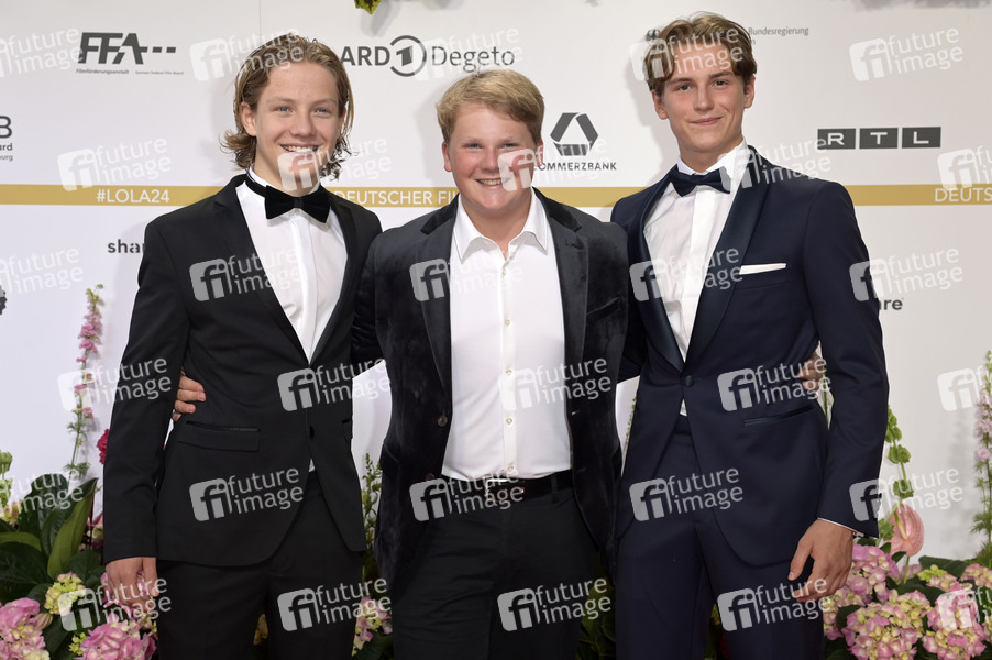 Levi Brandl, Julius Weckauf und Nevio Wendt bei der 74. Verleihung des Deutschen Filmpreises 2024 im Theater am Potsdamer Platz. Berlin, 03.05.2024