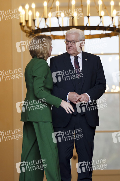 Elke Büdenbender und Frank-Walter Steinmeier beim Empfang zu einem gemeinsamen Gespräch mit dem Bundespräsidenten im Schloss Bellevue. Berlin, 18.11.2025