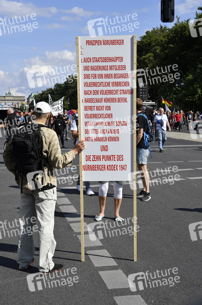 Tausende Menschen demonstrieren gegen die Coronavirus-Auflagen auf der Straße des 17. Juni und am Großen Stern. Außerdem gibt es Gegendemonstrationen. Berlin, 29.08.2020