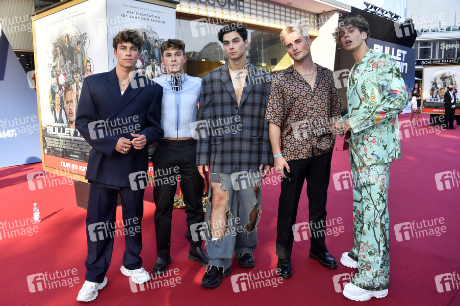 Tim Schäcker, Luis Freitag, Julien Brown, Jacob Rott und Bene Schulz von den Elevator Boys beim Special Screening des Kinofilms 'Bullet Train' im Zoo Palast. Berlin, 19.07.2022