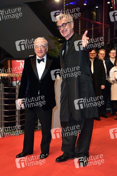 Martin Scorsese und Wim Wenders bei der Verleihung des Goldenen Ehrenbären an Martin Scorsese auf der Berlinale 2024 / 74. Internationale Filmfestspiele Berlin im Berlinale Palast. Berlin, 20.02.2024