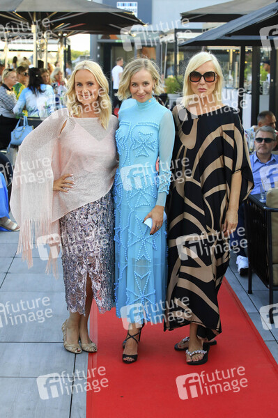 Anja Petzold, Kashia Lemann und Sylke Schumann aka Celia von Barchewitz bei der Rooftop Fashion Show von Viktoria Varga und Celia von Barchewitz mit Charity Gala auf der Bar Cabana Dachterrasse. Leipzig, 13.08.2024