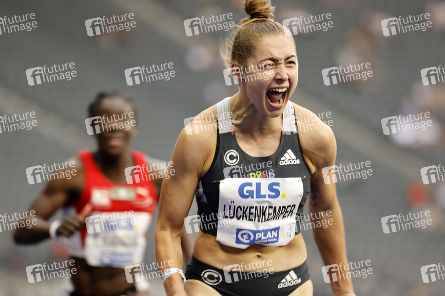 Gina Lückenkemper siegt im 100 m Finale mit einer Zeit von 10,99 s beim Sportevent Die Finals - Berlin 2022 mit der Leichtathletik Disziplin 100 m Sprint Frauen im Olympiastadion. Berlin, 25.06.2022