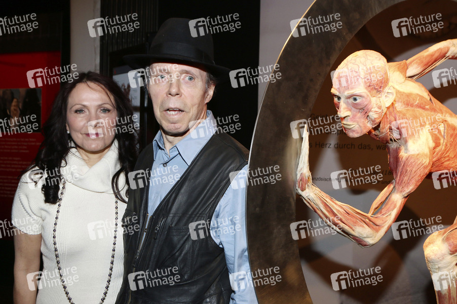 Gunther von Hagens mit Gattin Angelina Whalley bei der Pressekonferenz zur Ausstellung 'Koerperwelten - Eine Herzenssache' in der KulturCompagnie. Hamburg, 14.05.2014