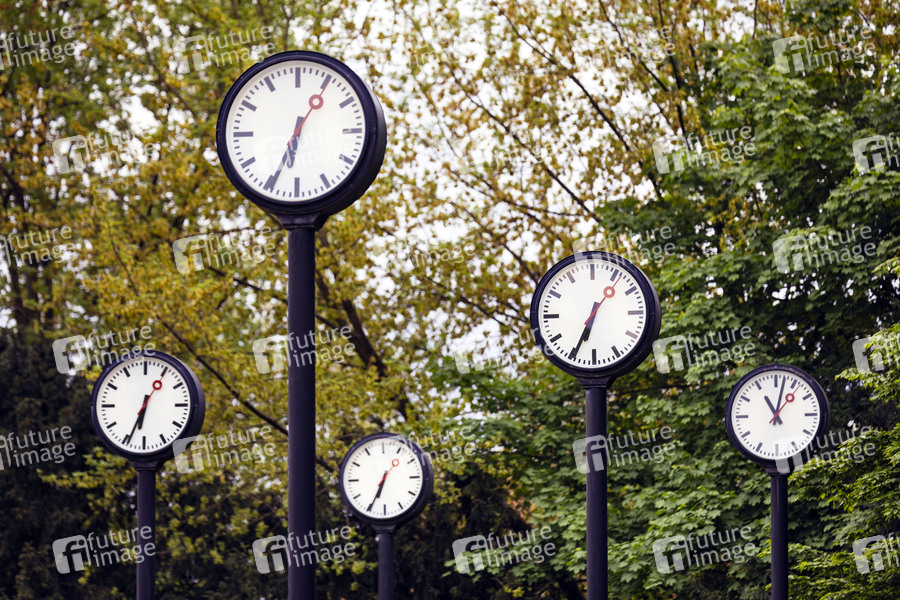 Uhren der Installation 'Zeitfeld' von Klaus Rinke. Düsseldorf, 05.08.2019
