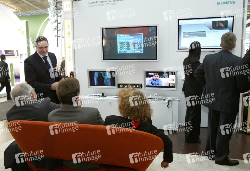 CeBIT 2006 (Centrum der Büro- und Informationstechnik) auf dem Messegelände in Hannover. Die weltgrößte Computer- und ITK-Messe (Informationstechnik und Telekommunikation) / The wolrd's largest ICT fair (Information and Communication Technology)