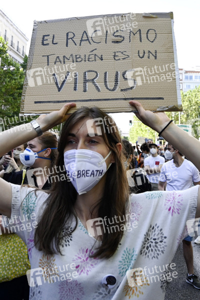 'Black Lives Matter' Demonstration gegen Polizeigewalt und Rassismus nach dem Tod des Afroamerikaners George Floyd vor der US-Botschaft. Madrid, 07.06.2020