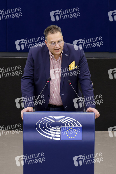 Romeo Franz im Plenarsaal des Europäischen Parlaments. Straßburg, 07.03.2022