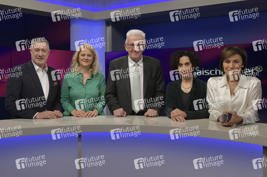 Joachim Llambi, Kristina Dunz, Winfried Kretschmann, Sonja Zekri und Sandra Maischberger in der ARD-Talkshow 'maischberger' im Studio Berlin Adlershof. Berlin, 11.12.2024