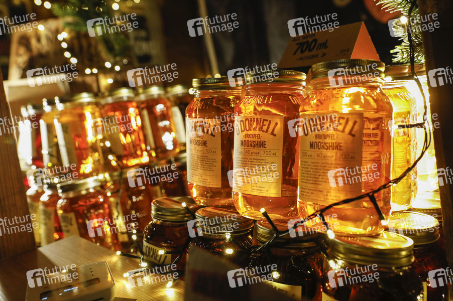 Weihnachtsmarktbude Brände und Liköre - Jedes Jahr verwandelt sich die Bonner Innenstadt in eine stimmungsvolle Budenstadt, dem Bonner Weihnachtsmarkt. Kunsthandwerk, Fahrgeschäfte und viele kulinarische Köstlichkeiten machen den Besuch bei gemütlicher Atmosphäre zu einem kleinen Erlebnis. Energiesparmaßnahmen finden sich in der LED-Technik, im begrenzten Zeitraum der Beleuchtungen nur zwischen 16 und 22:00 Uhr sowie beim Verzicht auf Heizpilze. Bonn, 03.12.2022