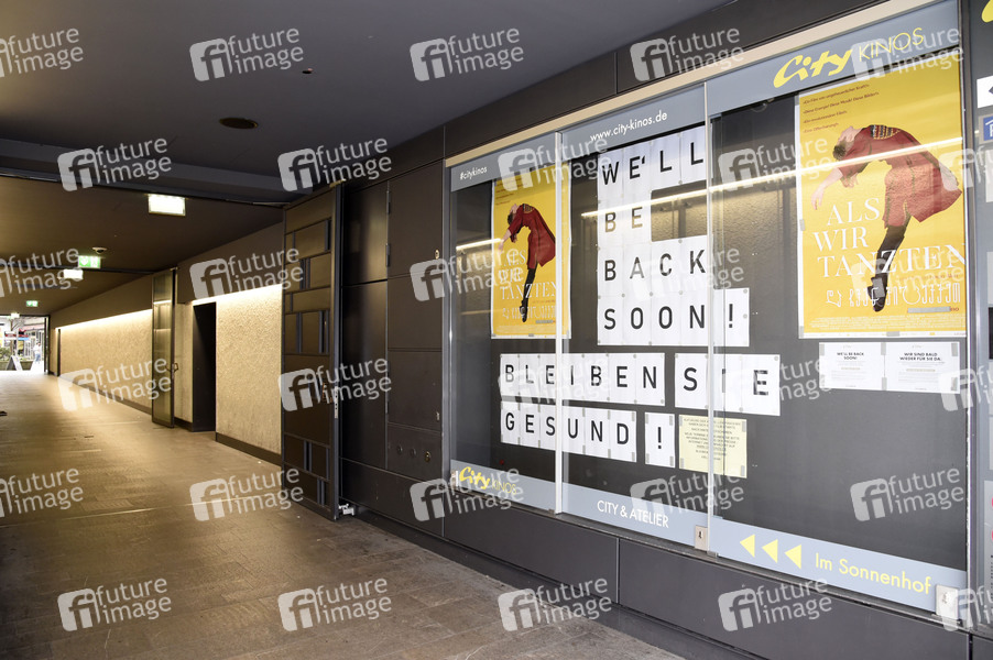 City Kino. Nach zuletzt beschlossenen Schutzmaßnahmen gegen die Ausbreitung des Corona-Virus kommt das öffentliche Leben in München nahezu zum Erliegen. Betroffen sind fast alle Sehenswürdigkeiten, Museen, Plätze, Strassen, Restaurants, Biergärten, Universitäten u.v.m. München, 17.03.2020