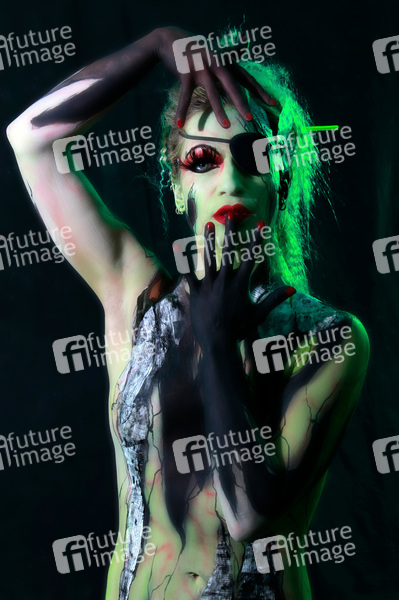 Bodypainting, Erotik, Frau, Mädchen, nackt, drinnen, weiblich, Körperkunst, Kunst, Malerei, Augenklappe, erotic, woman, girl, nude, indoor, female, body art, body painting, eyepatch