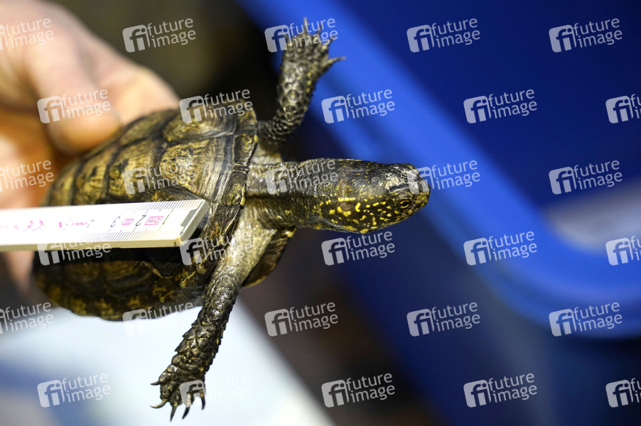 Sea Life, Schildkröten, Schildkröte. Putzen, Zahnbürste, Europäische Sumpfschildkröte, Extrapflege, Großreinigung, Wathose, Fensterwischer, Zollstock
