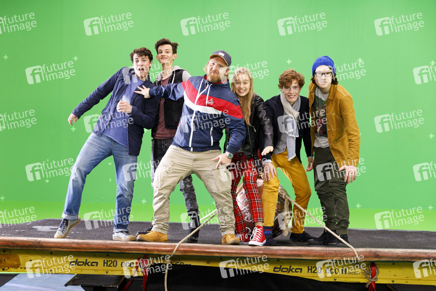 Oskar Keymer, Eloi Christ, Axel Stein, Lina Hüesker, Georg Sulzer und Maximilian Ehrenreich beim Fototermin am Set des Kinofilms 'Hilfe, ich hab meine Freunde geschrumpft' in den MMC-Studios in Ossendorf. Köln, 01.10.2019
