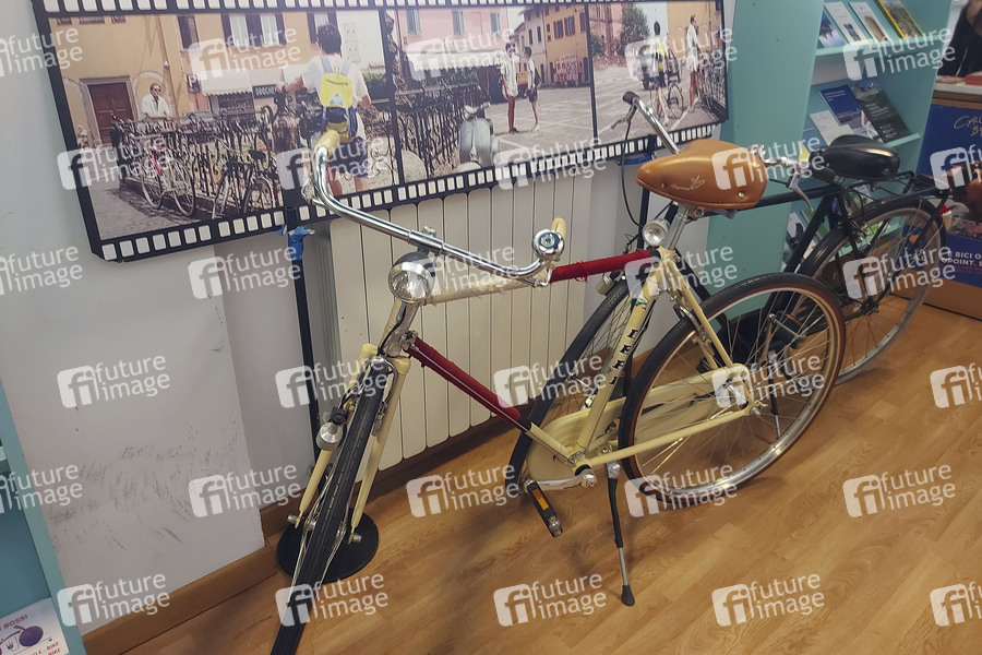 In Crema wurde der Film 'Call Me by Your Name' von Luca Guadagnino zum Großteil gedreht. Im Bild Touristeninformation mit Infos und Originalrequisiten aus dem Film . Crema, 31.07.2024