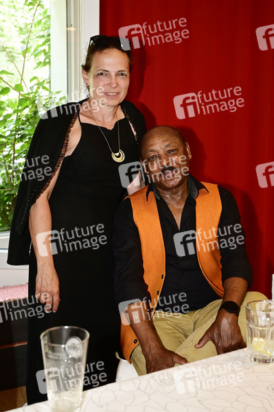Mekonnen Shiferaw mit Ehefrau Jeannette Shiferaw bei der Trauerfeier für die am 24. Mai 2024 verstorbene Angela Gentzmer im Stadttheater Köpenick. 27.06.2024