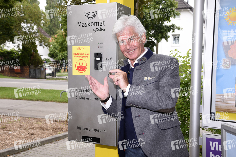 Frederic Meisner bei der Präsentation des ersten Flavura Maskomaten in München vor der Netto-Filiale in Aubing. München, 17.06.2020